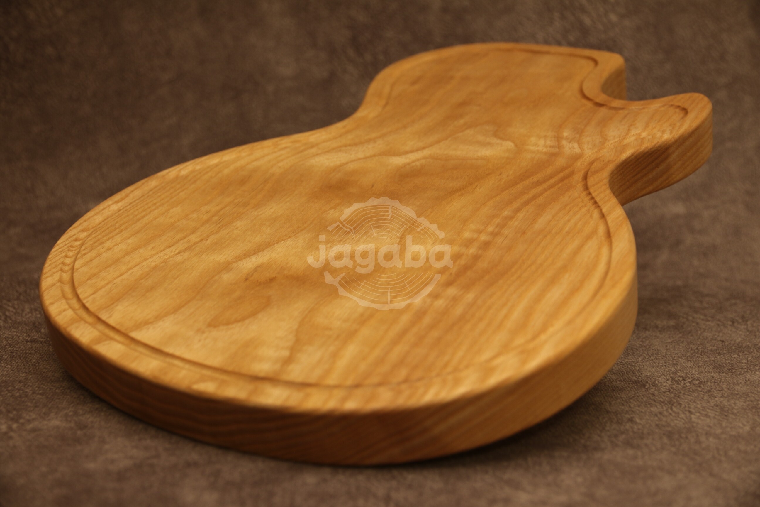 Deska do krojenia z drewna jesionowego w kształcie gitary elektrycznej, solidna i trwała, idealna na prezent. Można wykorzystać ją w sposób tradycyjny lub użyć jako dekoracji.