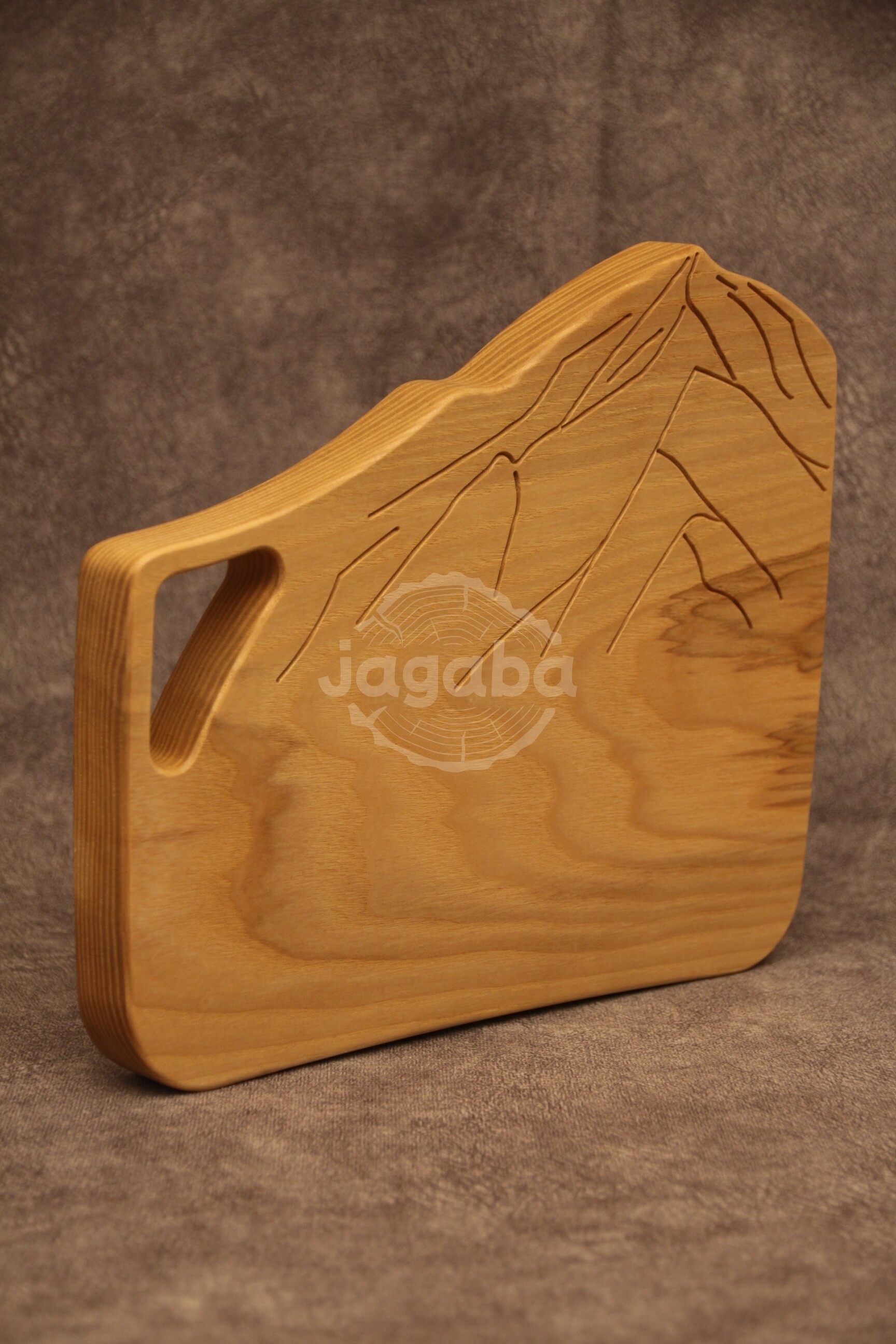 Deska do krojenia z litego drewna jesionowego z wygrawerowanym szczytem górskim, idealna na prezent dla miłośników gór. Można wykorzystać ją w sposób tradycyjny lub użyć jako dekoracji.