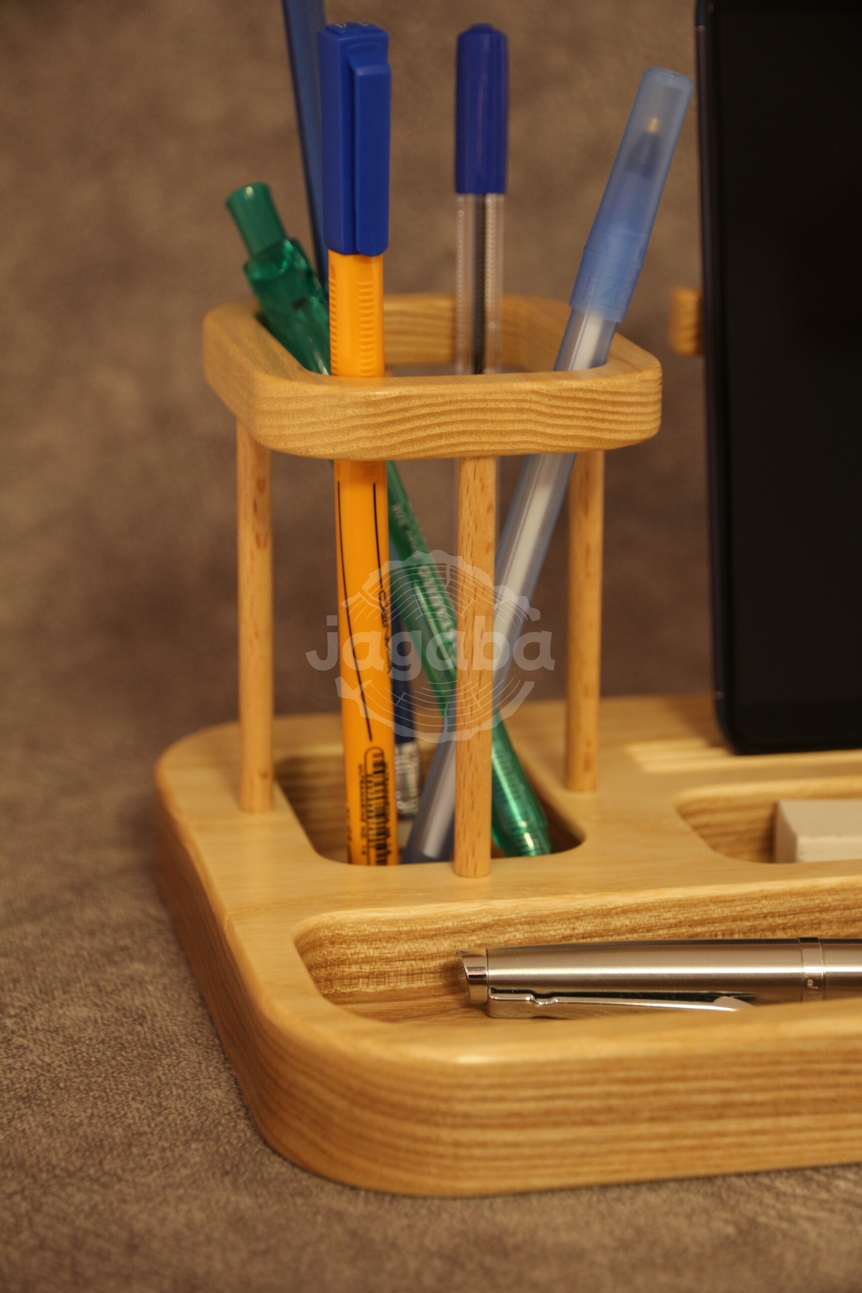 Nasz jesionowy organizer pozwoli w łatwy sposób zaprowadzić porządek na biurku. Doskonały wybór na prezent dla pracujących w domowych biurach. Organizer również dobrze sprawdzi się na biurku ucznia podczas odrabiana lekcji.