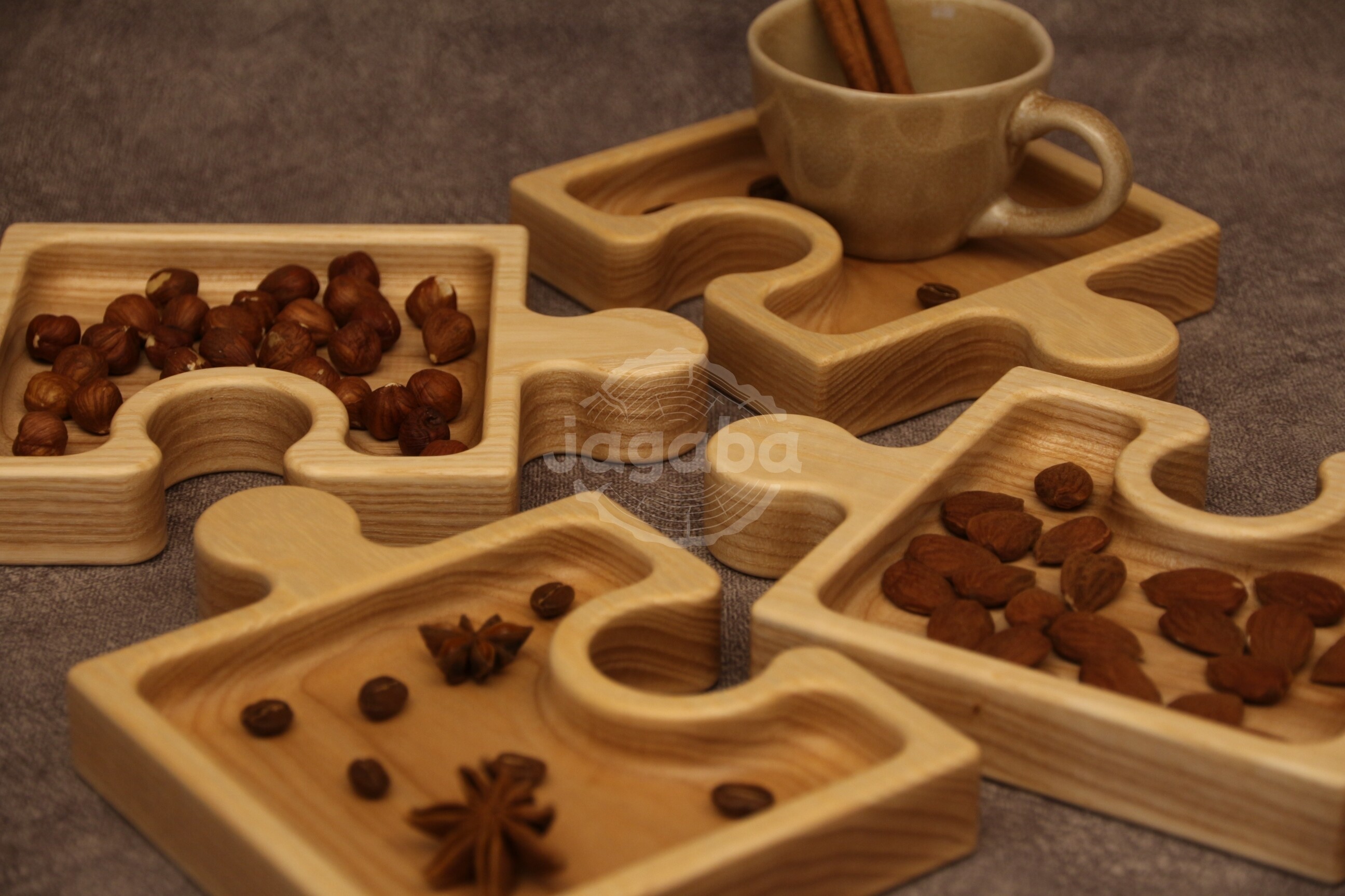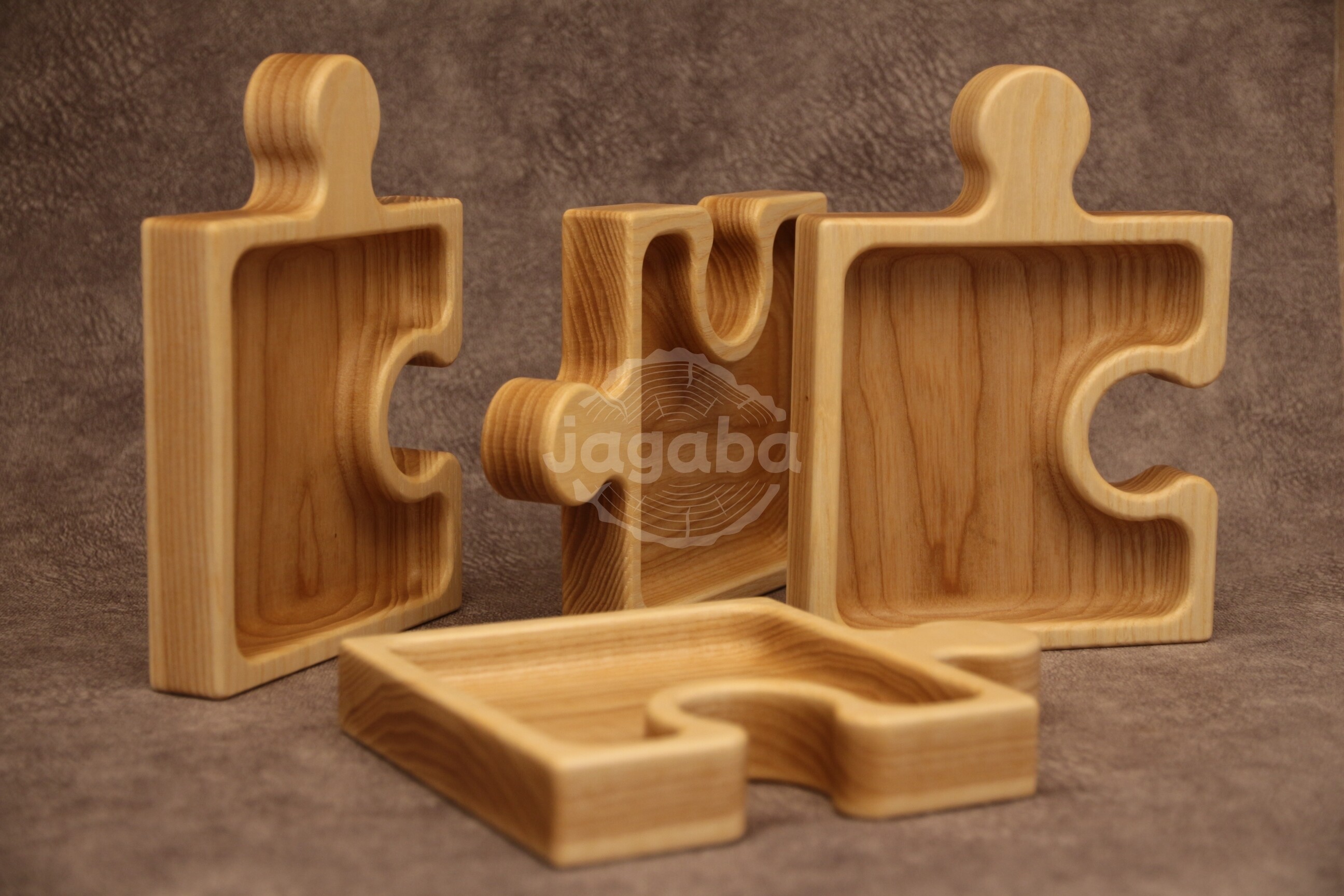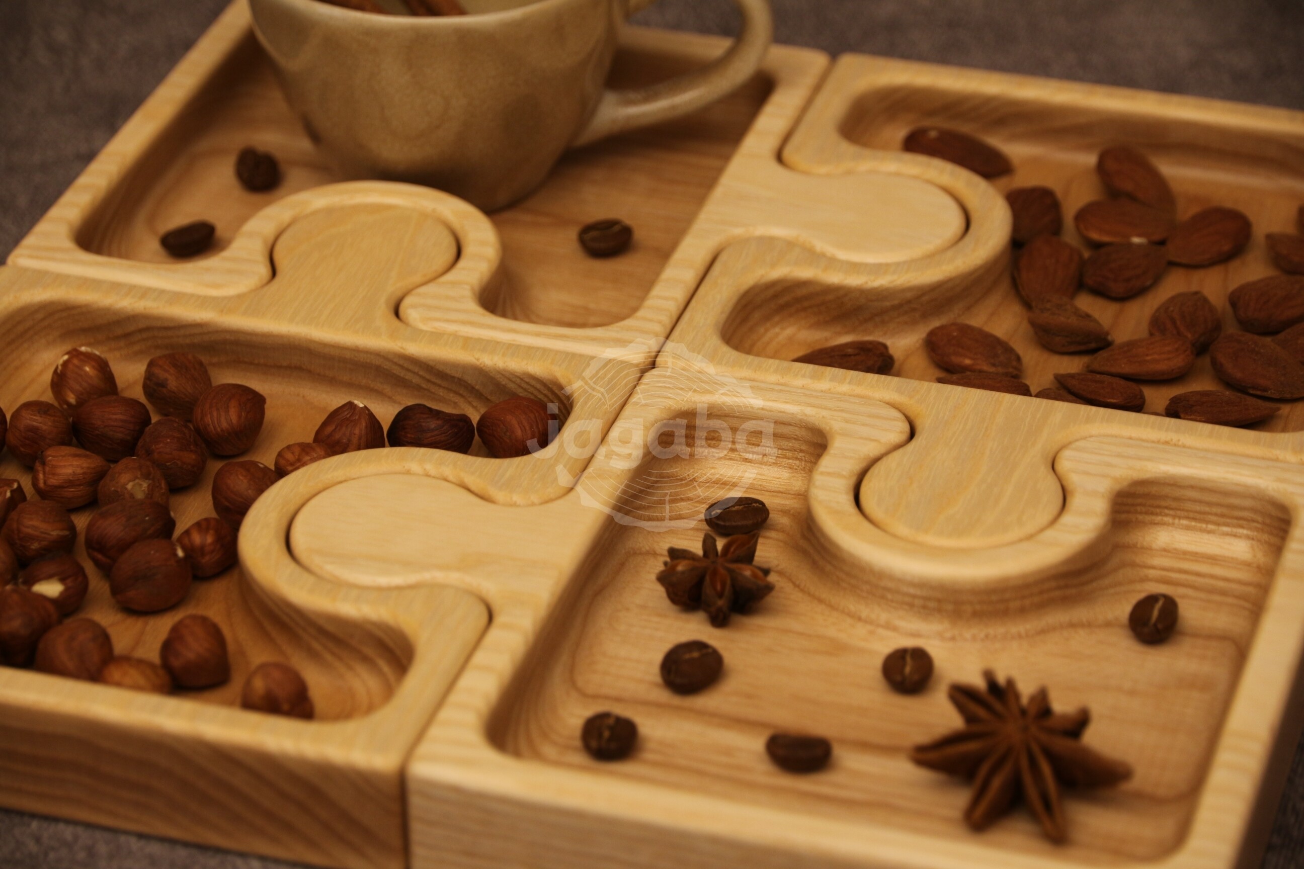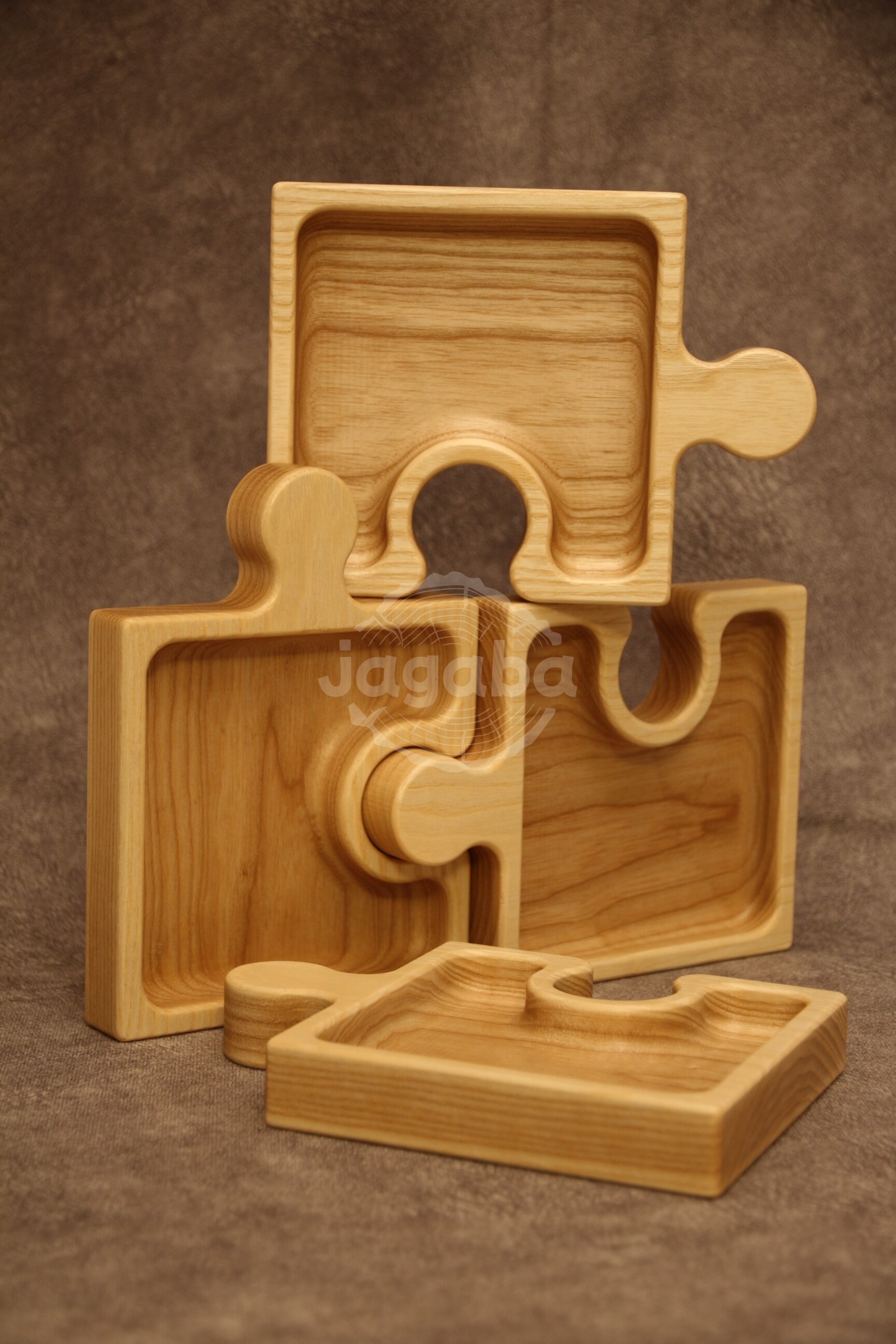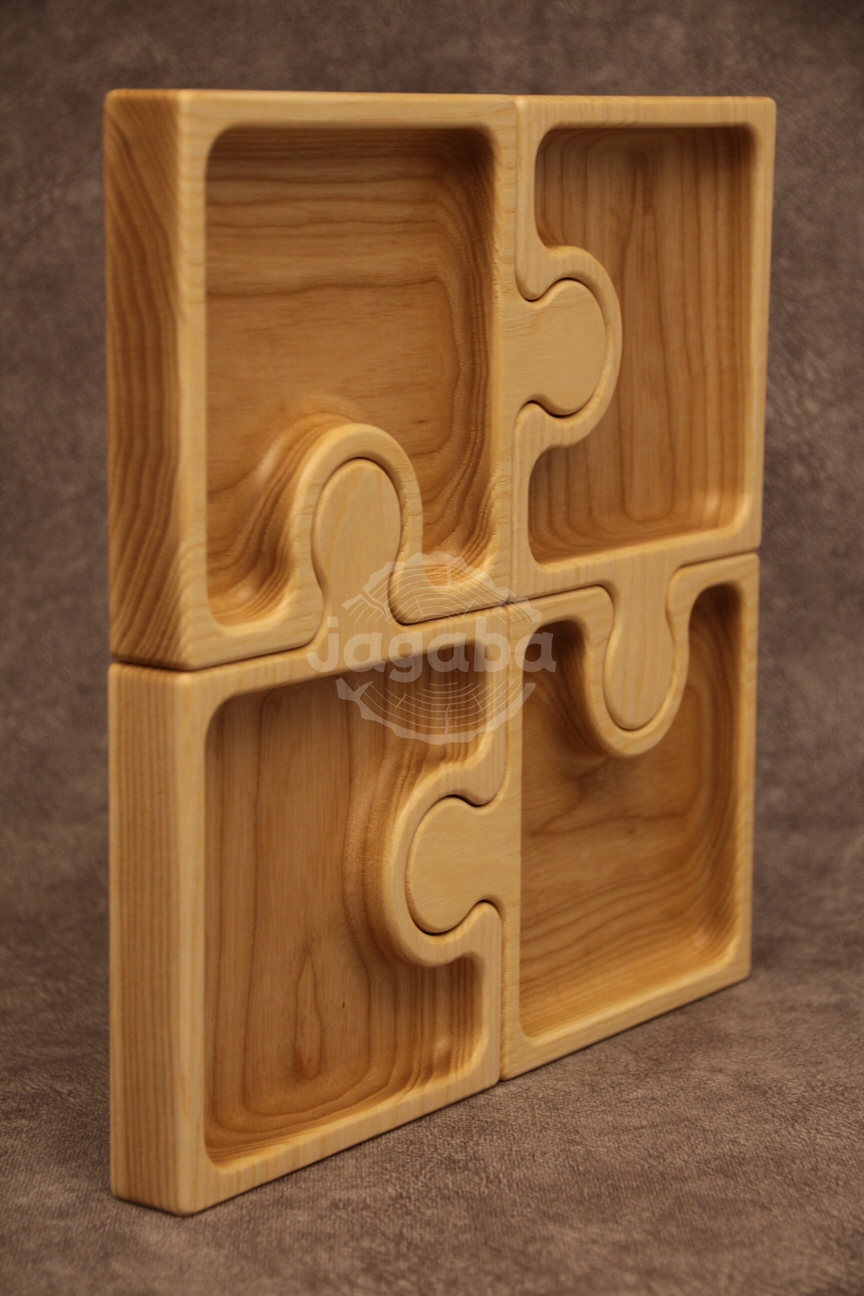 Taca z litego drewna jesionowego - Puzzle do serwowania przekąsek, suszonych owoców, orzechów lub do przechowywania drobiazgów np. biżuterii.